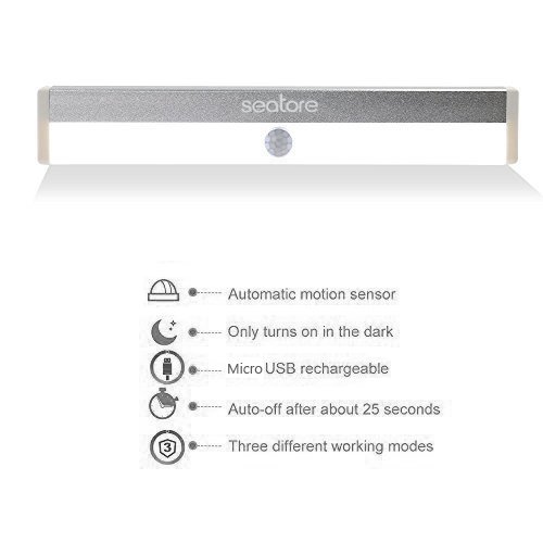 - Rechargeable: The motion sensor light can be recharged via a miniature USB port, powered by build-in battery, no need to replace AAA batteries.