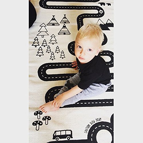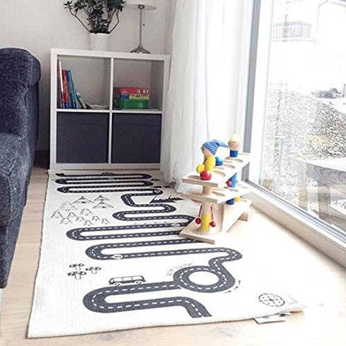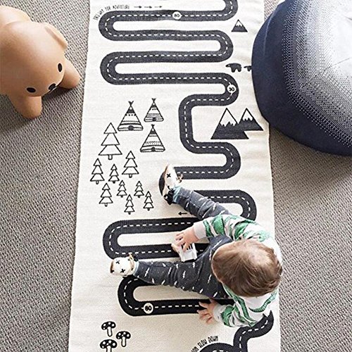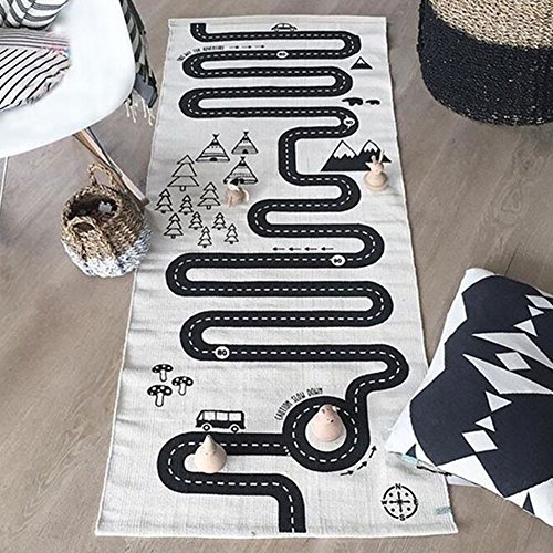 -. Feature : Size:70"L x 28"W(70cm x 175cm ); Real Color: Beige Yellow / Cotton canvas material, soft , safe and skin friendly / Cartoon Racing road lines pattern, draw baby's attention and interest / The game carpet can cultivate baby's thinking ability,visual crawling and intelligence / Pay attention: this mat is for summer, not thick style. If you mind, please be cautious to order.