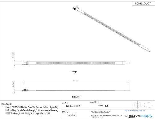 Panduit IT9100-CUV6 In-Line Cable Tie, Weather Resistant Nylon 6.6, UV Dark Blue, 124 Min Tensile Strength, 3.94" Max Bundle Diameter, 0.065" Thickness, 0.350" Width, 14.1" Length (Pack of 100)