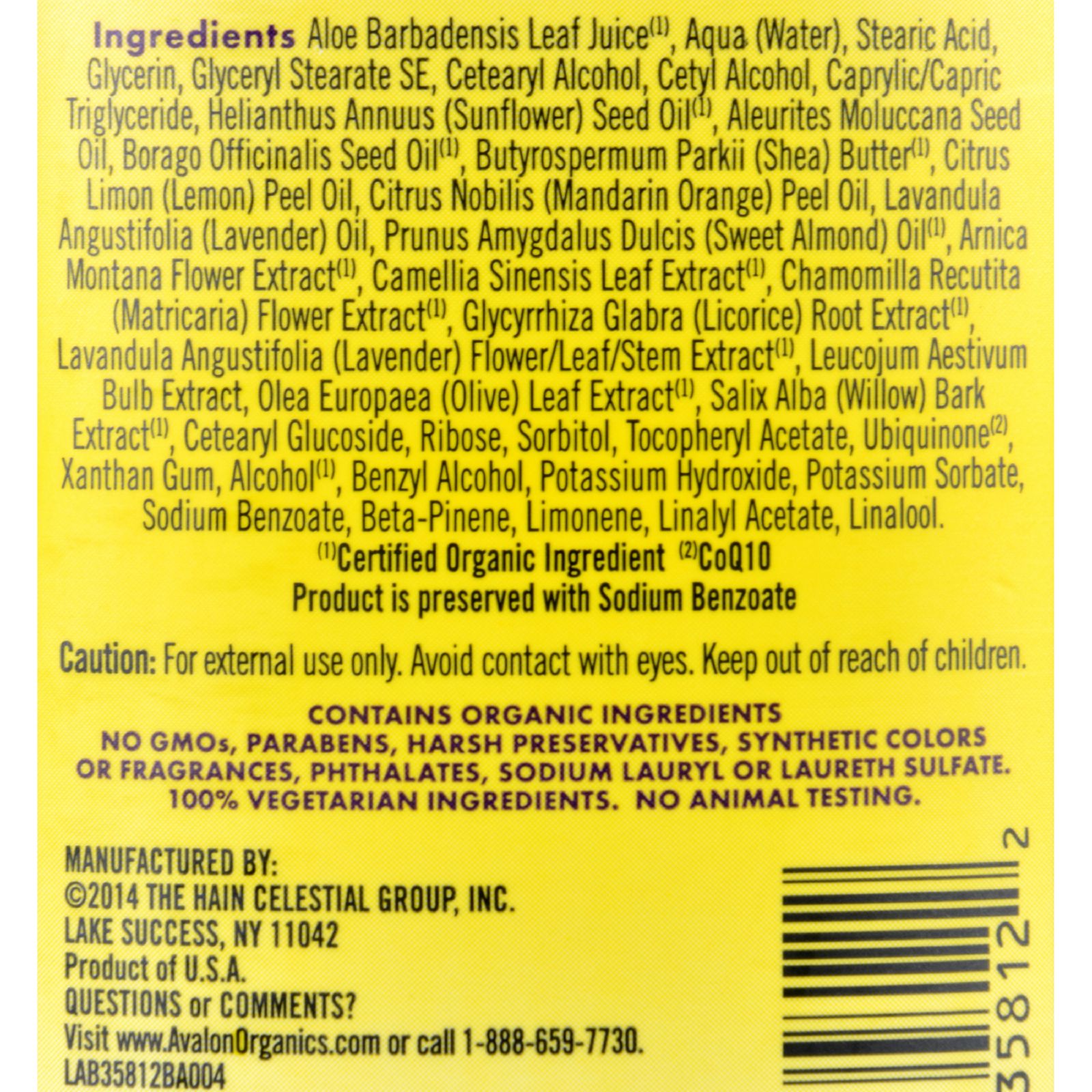 Patented Coenzyme Q10 U.S. Patent No. 4,654,373Ingredients: Certified organic lavender floral water, herbal infusion ofcertified organic green tea, chamomile, althea, sage and yarrow, caprylic/capric triglyceride (from coconut), stearic acid (vegetable fatty acids), certified organic safflower oil, shea butter, cerified organic aloe vera, certified organic almond oil, certified organic rosemary extract, sorbitol, NaPCA, tocopheryl acetate (vitamin E), retinyl palmitate (vitamin A),methyl/proplparaven, pure essential oils fo neroli, bergamot, mandarin and sweet lavender. |