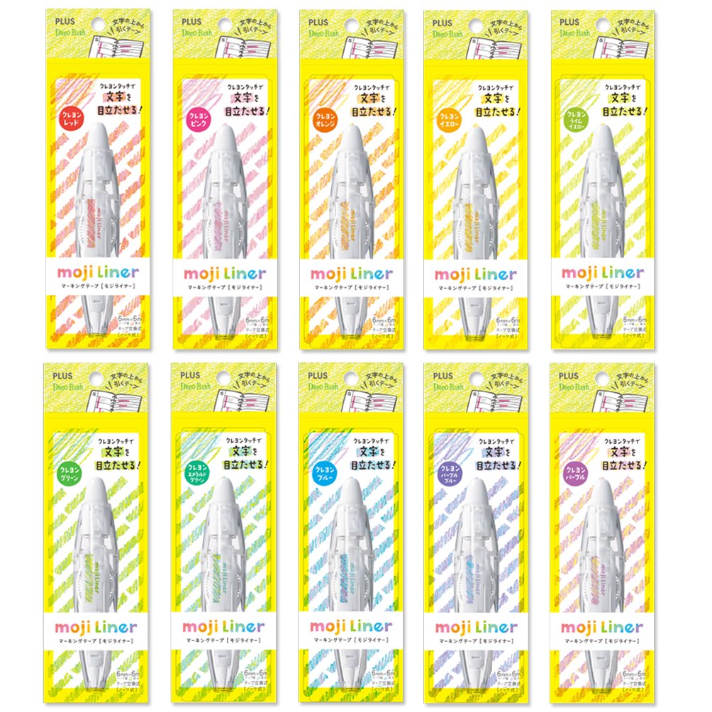 Plus moji liner crayonred marking tape (body) crayons touch 10 colors pack Pink Red Orange Yellow Lime Yellow Green Emerald Green Blue Purple Blue Purple