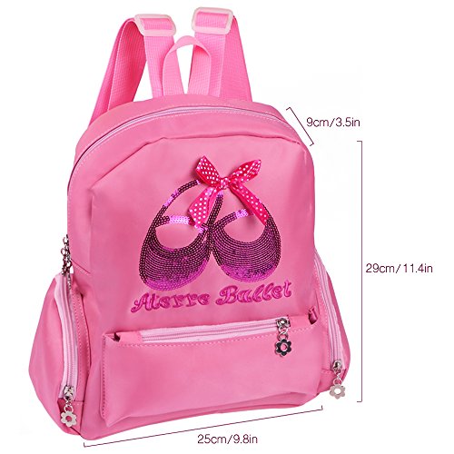 Product Description kilofly Girls Ballet Backpack is a nice school bag that fits your little girl's school essentials. Made of high quality, water resistant nylon, this cute backpack is durable for years of use. With lovely sequins and embroidery in the front, 3 outter pockets and 1 large main compartment, this bag definitely will become your girl's favorate bag, as well as receive lots of compliments.