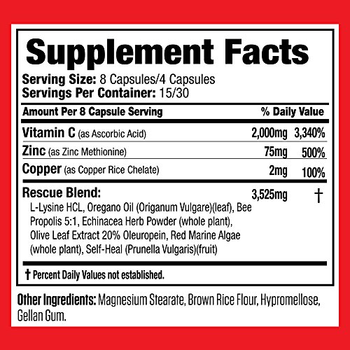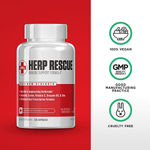 HERP RESCUE #1 Best formula to clear skin FAST of Herpes, Cold Sores, and Shingles.- Full 30 Day Supply l Lysine, Zinc, Vitamin C, Oregano Oil, 120 Capsules