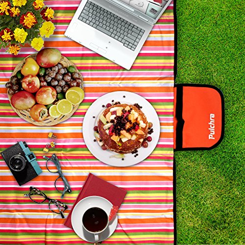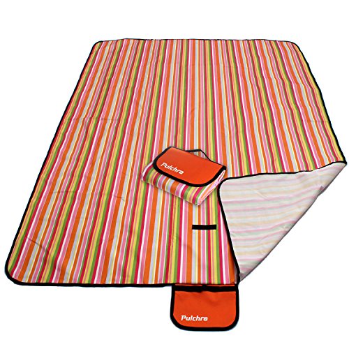 Studio : Pulchra Publisher : Pulchra Product Description Still using a hard-to-clean blankets? Looking for an inexpensive but durable picnic mat? Why don't you try Pulchra 600D Oxford picnic blankets? Washing-friendly, cost-effective, portable and quality products from professional picnic blankets manufacturer. The waterproof PVC coating on the bottom can effectively prevent water from percolating through the blanket. Save your time from searching a dry place and you can chose a better location for wonderful scene. Our picnic blanket can also be used on the beach without wetting the mat, giving a place for your friends and family to rest when they get tired. Our extra-large blanket can accommodate 4-5 people without being crowed. Tableware and foods can be placed on the mat, and you can also play games on the picnic blanket freely. The blanket is not only large but also easy-to-fold. 57"×79" (145×200 cm) picnic blanket can be easily folded into a 7"×10" (18×25 cm) pack. The handle is designed to enable convenient carry and you can bring more other belongs with your package. Strict quality control Professional production test, strict quality control, what PULCHRA provides is a worry-free purchase. All outdoor mats have passed strict inspection before they sell. If you are not satisfied in any way, get replacement or refund with no questions ask, Pulchra will try best to provide satisfactory service. 8 Original Design Marine Strip Tangerine Strip Sapphire Flower Orange Flower Crayon Brown Circle Lime Circle Mint Flower Size Weight Folded Size: 9.4"×7.4" (24×19 CM) Unfolded Size: 80"×60" (200×150CM) Weight: 2lb (950g) Warranty: Worry-Free Purchase at Pulchra. 15 MONTHS Warranty Guaranteed. Your feedback and review have been our biggest motivation. Please leave your feedback review so that we can create more practical products. 0