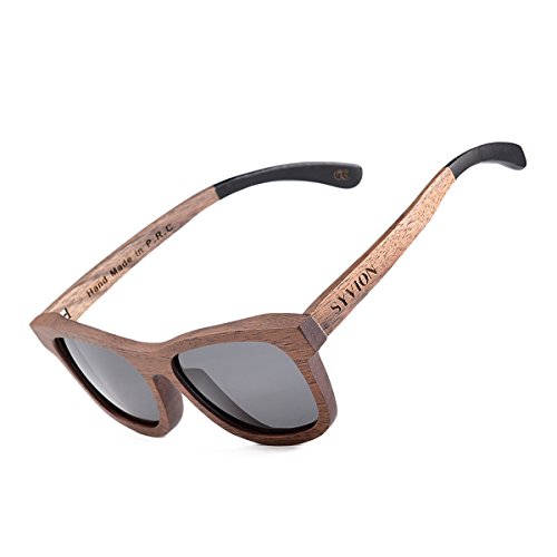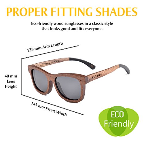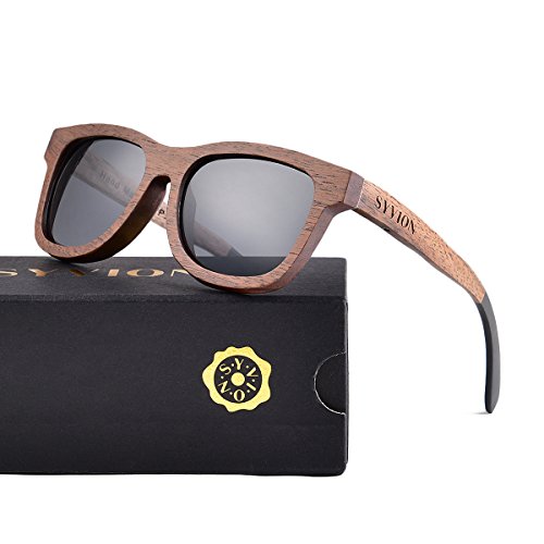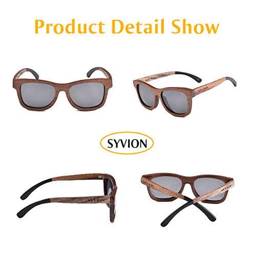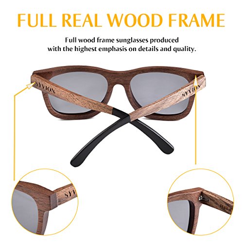 SYVION Polarized Wood Sunglasses Mens Womens Black Walnut Wooden Frame