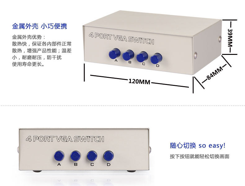 高清 VGA 切换器 四进一出 4进1出 电脑VGA视频切换器 分配器四口