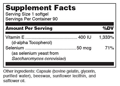 Selenium + Vitamin E, provided by Douglas Laboratories, supply 400 IU of natural vitamin E and 50 mcg of selenium in each gelatin softgel.