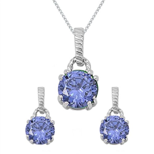 -. Title : Sterling Silver Brilliant Cut Simulated Tanzanite Necklace and Earrings Set