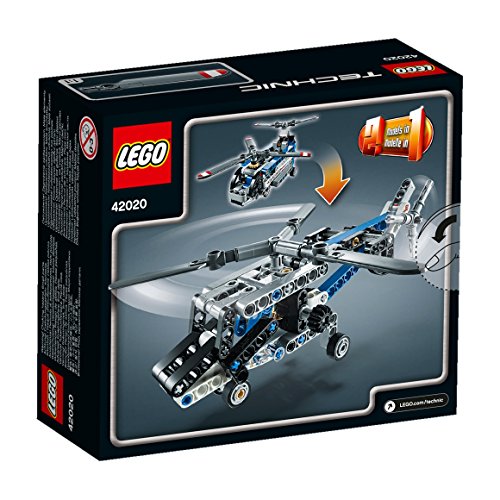 Get your LEGO Technic model building off to a flying start with the 2-in-1 Twin-rotor Helicopter. Featuring linked spinning rotors, an opening cargo door and cool rescue styling, this great model offers just the right level of challenge for first-time builders. It also has a turning front wheel for easy maneuvering on the ground. Rebuilds into a single-rotor helicopter.