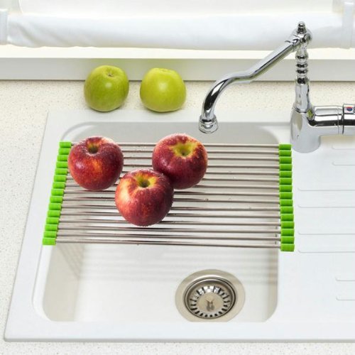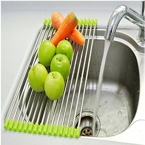 -. Brand : Xcellent Global -. Feature : Space-saving dish mat unrolls above an open sink for air-drying washed dishes Or fruits. / Water Drips Directly into Sink / Mat dries quickly and rolls back up for storage / Material: Stainless Steel and silicone / Dimensions: 23*48 cm -. Label : Xcellent Global -. Manufacturer : Xcellent Global -. ProductGroup : Kitchen -. ProductTypeName : KITCHEN -. Publisher : Xcellent Global -. Studio : Xcellent Global -. Title : Xcellent Global Stainless Steel Roll-Up Folding Drain Rack Colander Drying Tray, Silver, Size 2348 cm M-HG064