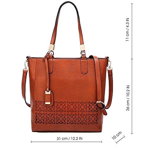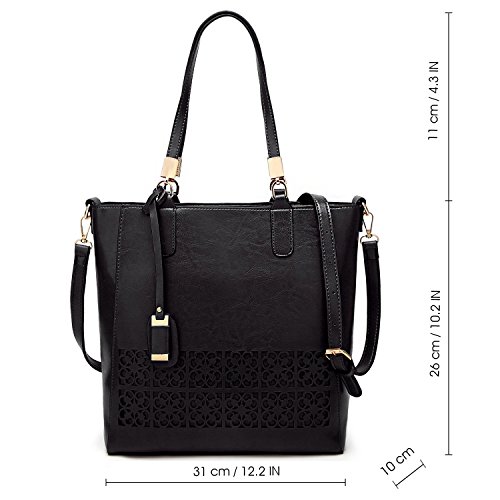 -. Feature : MATERIAL: Material Updated To Good Quality PU Leather. It's a Beautiful and Simplistic Design Leather Botton Closure Shoulder Bag. / CLOSURE: Top Zipper Closure,Special Designed Flap for Extra Safety.Pu leather,it is Rainproof,There is No Worry About The Items In The Bag Get Wet in Rainy Days. / DIMENSIONS and INTERNAL: 9.5"W x 4.3"W x 10.6"H.Strap Drop Length: 9.1".One Back Pockets in Outside.Internal Large Capacity:The inside has 1 main compartment,1 large interlayer zippered pocket, two open-top pockets.It is advertised as a women shoulder bag handbags. however it is stylish and roomy enough for various ages. There is room inside for a couple books, but not a big notebook. I do think you could put a few necessities, and a wallet. / APPLICATION:Convertible Multi-use.Three Different Carry Ways for Various Occasions.You Can Simply Use it As a Casual Shouler bag,Stylish Top Handle Bag or a Special tote bag With no Need to Remove the Strap / FEATURES: Decorative Gold-tone Hardware, Zip-pockets in Middle, Detachable Shoulder Strap and Top-zipper Closure