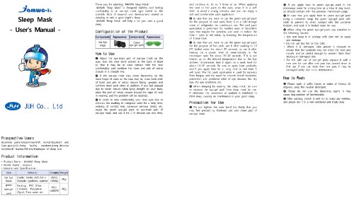 Studio : JUH Publisher : JUH Binding : Health and Beauty Product Description This product is the Sleep Ear/Eye Mask of the New Paradigm that destroyed the existing stereotypes of sleep mask. The ergonomic/three-dimensional/stylish design covering your eye and ear at the same time without having to touch your eyes, which can be help the elimination of fatigue, the mental stability, and the sleep induction comfortable. This is a product of handmade used the textile harmless to the human body, which provides the best satisfaction. Using the hot/cold eye gel pack, you can relieve the eye-strain in an appropriate manner in accordance with the state of the your eye. For exampe, it is used as the cold eye gel pack to relieve bloodshot eye or the hot eye gel pack to relieve dry eye for approximately 2~10 minutes. 0