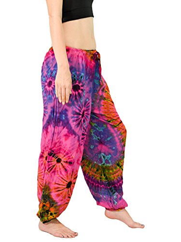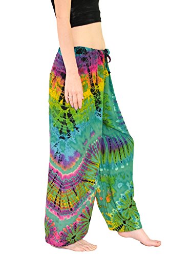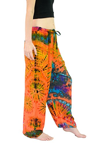 -. Binding : Apparel -. Brand : Orient Trail -. Department : womens -. Feature : Tie-dye pants with comfy drawstring elastic waist | Single small back pocket | Loose elastic ankles / Fits up to 31" Waist and 41" Hips, Womens sizes US 4-12 Measurements: Waist Opening: 24" to 42" Length: 40" Inseam: 28" Back Rise: 16, Front Rise: 14" / Hand "Cold" dyed to help prevent bleeding and fading / Model Info: Height: 5'6'' | Bust: 33 | Waist: 28 | Hip: 38 | Wear Size: medium / Hand wash separate - Hang to dry | Lightweight | Quick to dry | Imported | American cut and quality -. Model : 102P -. ProductGroup : Apparel -. ProductTypeName : PANTS -. Title : Orient Trail Women's Yoga Pajama Tie-Dye Hippie Pants Size US 4-12