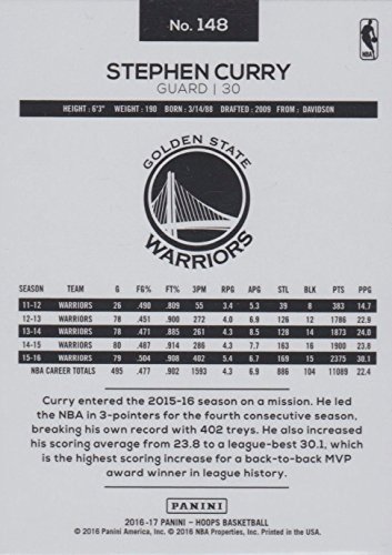 2016-17 Panini NBA Hoops #148 Stephen Curry Golden State Warriors Basketball Card-MINT