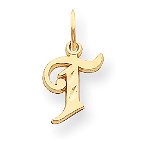 -. Title : 14K Yellow Gold Satin Letter T Initial Charm 17x10mm