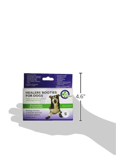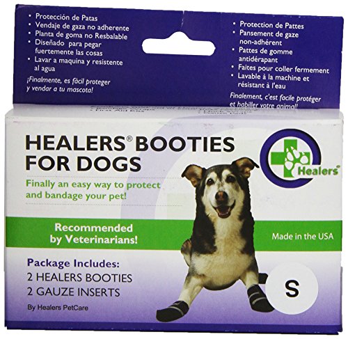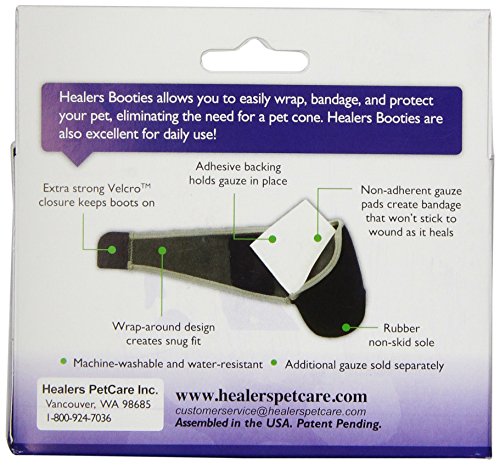 Studio : Healers PetCare, Inc Publisher : Healers PetCare, Inc Binding : Misc. Product Description Healers Booties are designed for protection and healing. The Healers boot provides air flow and moisture wicking properties, decreasing the opportunity for infections and shortening recovery time for injuries to the animal. Healers are manufactured with a High Tech medical grade material that is used in the human market for healing wraps. Its outer surface is loop fabric so the hook can attach anywhere. This provides pet owners the ability to get a snug, secure, fit as they wrap the boot around the paw. The Velcro Hook applied is low profile, high tensile strength hook that enables a strong hold, keeping the boot in its place. Healer's uses the highest quality components available and are made in the USA. They are recommended and used by Veterinarians. Our boots are made to last and are machine washable. Healers Gauze Inserts are designed to fit right inside the boot turning the boot into a non-adhesive bandage. The gauze pads will not stick to the wound while it heals and it has adhesive on the back side so you can place it where you need it. Healers Boots are comfortable, they provide traction on hardwood floors and the synthetic leather sole are perfect for light outdoor use. Best of all they are a bandage that is easy to use and make dressing changes a snap. Healers booties are sold as individual units or in a box set with 2 boots and 2 gauze inserts. They come in 5 sizes from extra small to extra large. Healers Gauze pads can be purchased separately. If you need added protection, check out Healers Leg Wraps. The leg wraps will connect to the boots extending the boot up the leg. 0