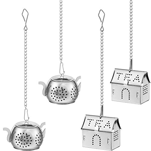 LOVELY TEAPOT-SHAPED AND HOUSE-SHAPED INFUSER WITH CHAIN - Lovely teapot-shaped and house-shaped infuser looks amazing, your families and friends will love it. The extended length chain comes with an easy to connect open mouth hook and weighted medallion to hold it in place. You can easily set the infuser your desired optimal height. The attached hook lets the ball hang from your teapot or panhandle and is easily removable when your herbs have fully steeped.