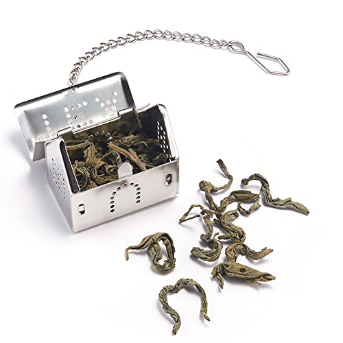 EASY TO USE - This stainless steel tea infuser is very to use, simply fill the basket with the tea of your choice. Give the top a quick twist and let it steep. Now you can replace your old tea bags and enjoy drinking fresh full flavored tea. The infuser is covered with fine holes for maximum water flow while only allowing very fine or powdered teas to escape, you can SAY NO to floating leaves.