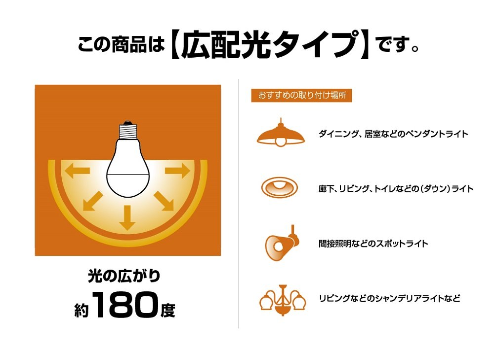 Recommended for downlight and chandelier type lighting equipment with wide wide light distribution type (light distribution angle 180 degrees)