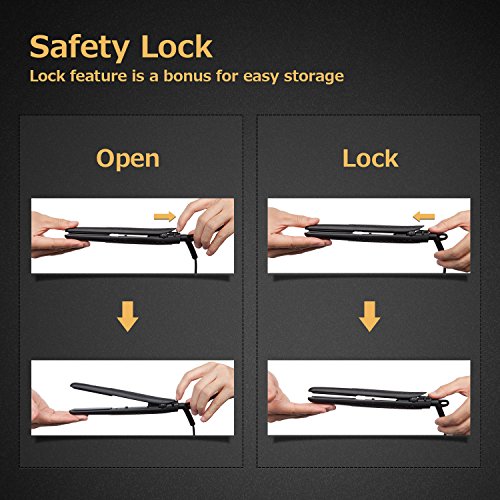 [ Ceramic & Tourmaline ] With ceramic technology, temperature range from 180℃ to 210℃ (365℉~410℉), the mini flat iron heats evenly all around, meaning no "hot spots" where a section might get hotter than another and burn or fry your hair. With tourmaline, it achieves ZERO sticking or pulling, and emits negative ions that help smooth the hair and eliminate frizz.