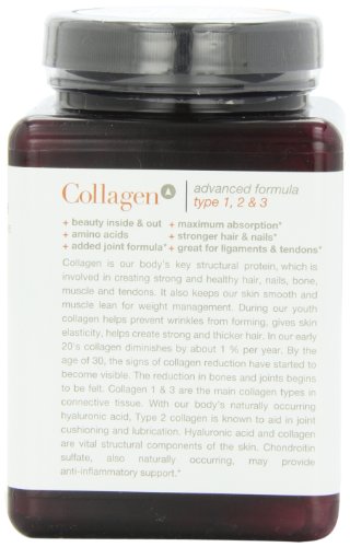 Collagen advanced formula 1,2, and 3 contains 18 amino acids. This formula is great for ligaments and tendons. This is an added joint formula. It gives stronger hair and nails.