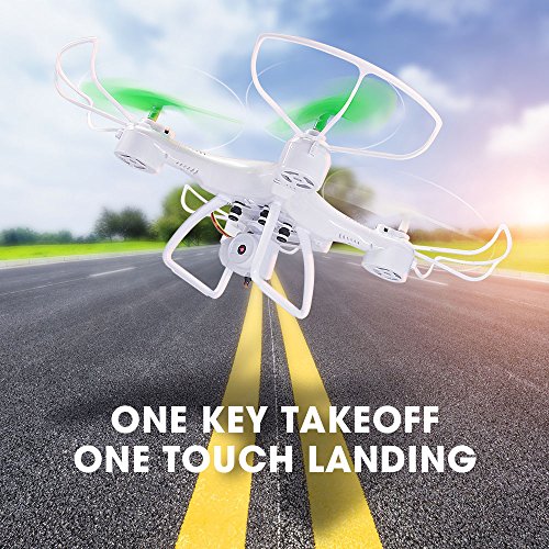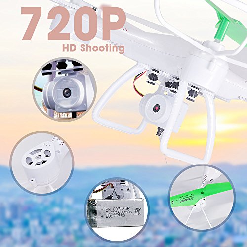 Features: ? High toughness and durable, high quality drone for kids; ? 1600mAh large capacity battery, long flight time drone for beginners; ? Full function and easy to control, with 720p camera live video, exciting flying drone for kids and beginners. Specifications: Color: White Style: Radio Control Quadcopter Material: ABS Plastic Battery Capacity: 3.7V 1600mAh Charge Time: 90 Minutes Drone with Camera: Yes Drone Flying Time: 20 Minutes Control Distance: 100M ( 0-50M safe range ) Size: 10.55 * 10.55 * 4.05 inches (268 * 268 * 103 mm) Package: Color Box Package size: 19.9 * 3.4 * 12 inches (505 * 85 * 305 mm) Function: 360° flip / WiFi Connection / FPV Camera / Real Time Transmission Video / 2.4GHz Remote Control / One Key Return / Headless Mode Important Tips for Drone: 1. The net weight of Quadcopter Drone is less than 0.5lb and no registration is required on FAA; 2. Don't push the throttle stick directly. Adjust the throttle slowly to avoid damage caused by loss of control; 3. For children under 12, need adults' appropriate guidance to play the RC Drone; 4. If the weather is bad or wind is strong, please don't take the drone out to fly; 5. The motors and circuit board will heat up when the RC drone is flying. We suggest the users take a 10 minute cool down break between flights to ensure the component life is as long as possible; 6. To avoid being burnt up the USB Charger, the RC Drone battery should be charging under 0.5A. 0 |
