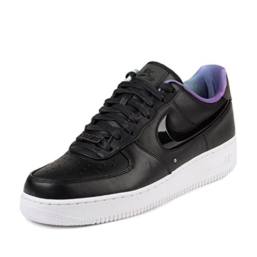 Binding : Apparel Product Description Nike Sportswear's Aurora Borealis Collection pays homage to the Northern Lights phenomenon that you can see occasionally light up Toronto's night sky. The greenish azure hue has landed on the likes of the Foamposite One and will now make its way to the inner lining of the Nike Air Force 1 Low. The upper is rather subdued thanks to an ominous black leather while the Swoosh stands out thanks to a patent finish. Contrasting lace-tips match the Northern Lights graphic lining for a unique twist. 0