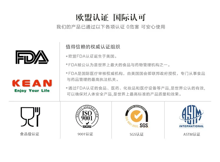 Certification:CIQ,EEC,CE / EU,FDA,LFGB,SGS
