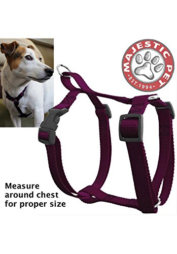 Studio : Majestic Pet Products, Inc. Publisher : Majestic Pet Products, Inc. Binding : Misc. Product Description 28-inch -36-inch Burgundy Pet Harness by Majestic Pet Products is a custom fit harness for your dog with room for growth. Made from 1-inch durable single ply nylon, tough plastic side release buckles, heavy duty bo by stitching, nickel plated welded metal d-rings and easy adjustment bars that allow for growth. 0