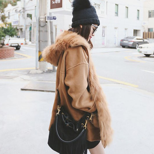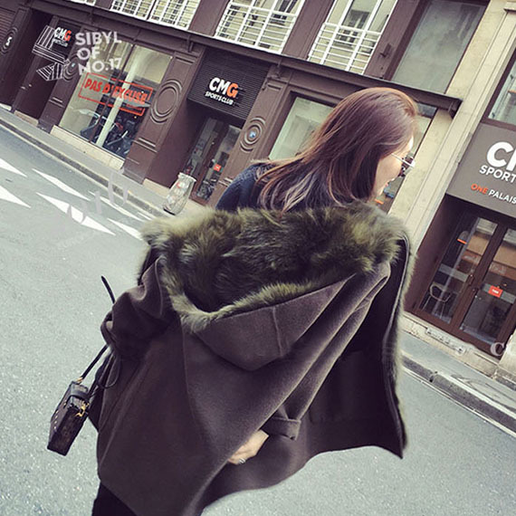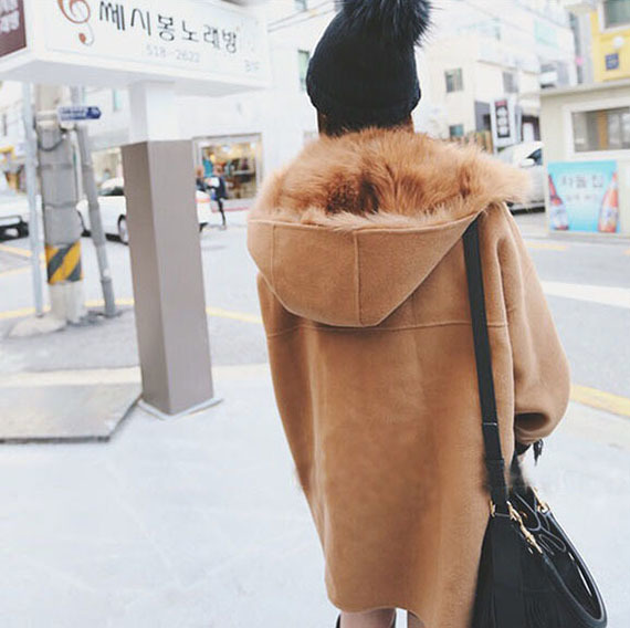 ふわふわの裏地でしっかり暖かいフード付きコート。