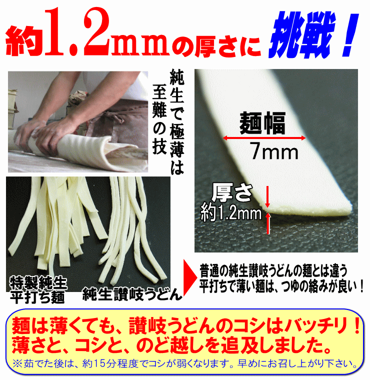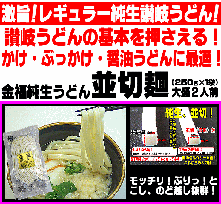 | 調理方法 | 多目のお湯でうどんを茹でた後、流水でもみ洗いをして表面のぬめり、塩分を 取り除き、器に盛ります。 |