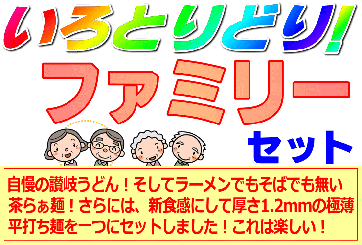 | 合計16人前つゆ付、讃岐うどん、茶らあ麺 オリパー麺の3種類とめんつゆ ![]() ![]() ![]() ![]() ![]() ![]() ![]() ![]() ![]() ![]() ![]() ![]() ![]() ![]() |