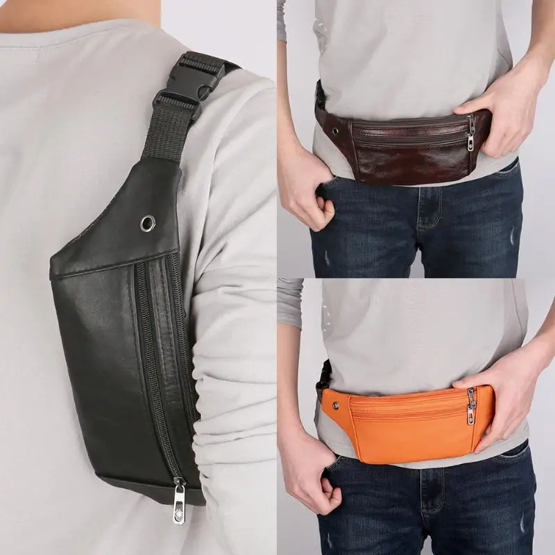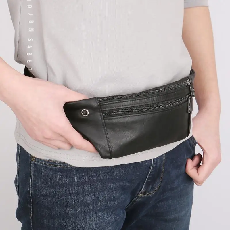 クラシック男性ウエストパックpuレザーショルダーバッグジッパー固体スリングハンドバッグ