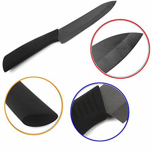 - ULTRA SHARP, GERM RESISTANT, RUST PROOF CERAMIC BLADES: Made of high-tech ceramic called zirconium dioxide, these blades stay sharp 10 times longer than steel knives. Slice through foods effortlessly and plus you won’t need to sharpen them regularly like traditional steel knives. The dense material won’t allow for germs to breed and because they’re not made of steel, they’re rust and stain proof.