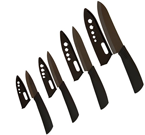 - INCLUDES: Four Ceramic Knives! 6" Chef's knife for melons, herbs, boneless meats & chicken. 5" Paring knife for slicing, dicing & julienne with ease. 4" Utility knife ideal for detailed trimming, peeling and mincing. 3" Fruit knife to peel vegetable skin with precision, make paper thin slices of carrots, potatoes or any of your favorite produce.