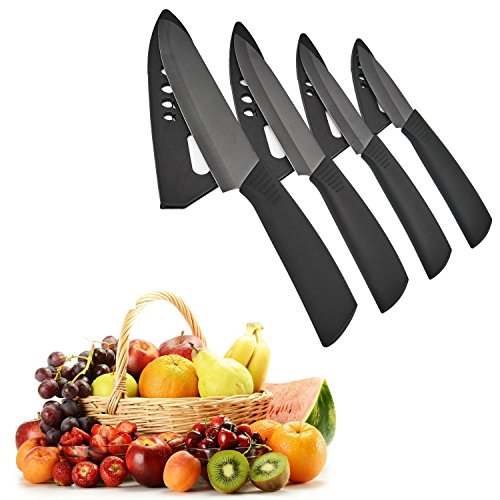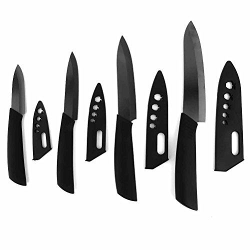 JahyShow Ceramic Knife Knife Set With Sheath 6" Chef Knife 5" Utility Knife 4" Fruit Knife 3" Paring Knife with Black Handle