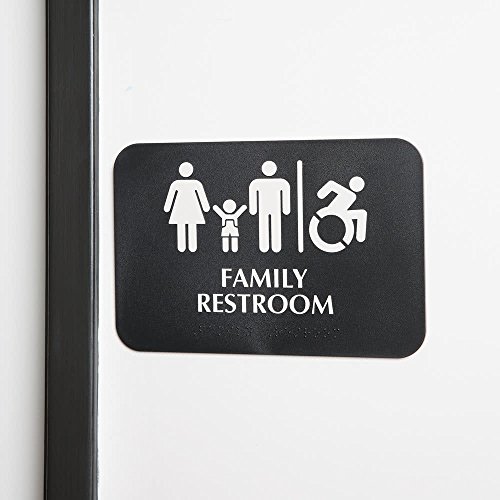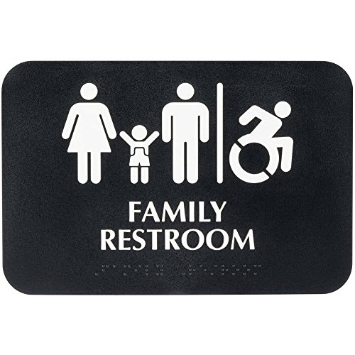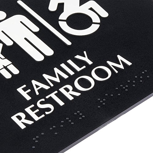 Family / Handicap Accessible Restroom Sign with Braille, Toilet Door Plate for Business Restaurant - Black and White, 9" x 6"