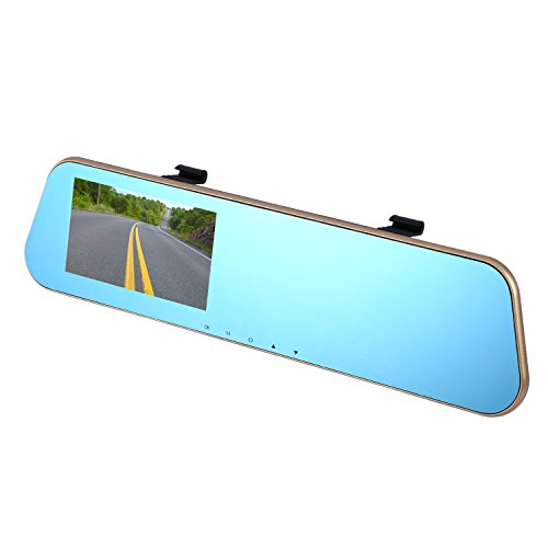 -. Feature : NEVER MISS A LICENSE PLATE: Simultaneous recording front and rear - record every moment in HD 720P/1080P front and 480P rear resolution at 30 frames per second - 140-degree field of view (FOV) - automatic operation each time you get in your car / CLUTTER-FREE WINDSHIELD: Front camera installs over your vehicles existing rearview mirror, minimizing visual obstruction - scratch resistant replacement mirror with 4.3" LCD screen - picture-in-picture (PiP) display - extra long 157-inch USB cable for easy routing inside your vehicle's interior / MOTION DETECTION: In standby status, you can switch the camera to motion detection mode. The device will enter into recording once camera observes the moved objection. It stops recording if no objection moved for 5s. Crash detection: Highly-sensitive G-sensor powered automatic video recording and video file locking when a collision or crash is detected. Parking Monitoring: When the vehicle parked, the device is automatically turned on and recording when a vibration is detected. / AUTO BACKUP CAMERA: Waterproof rear-view license plate camera with extra long cable included - automatic backup camera featuring active visual guidelines when reverse is selected - full step by step installation guide available online / SEAMLESS VIDEO RECORDING: Automatic seamless video recording in loop to use the storage efficiently, with the earliest unlocked video clips being overwritten when reaching the storage card's maximal capacity. Customizable video clip length of 1, 2 and 3 minutes