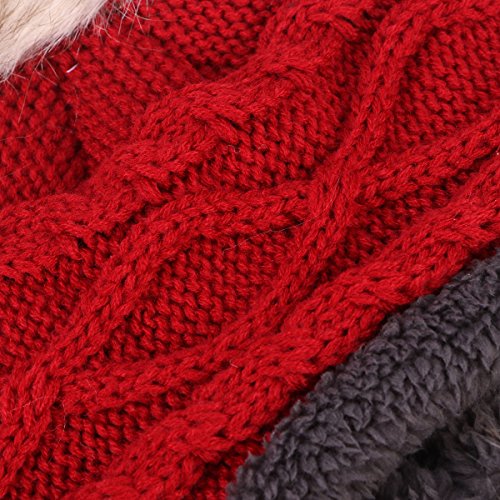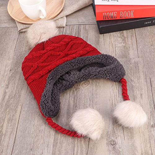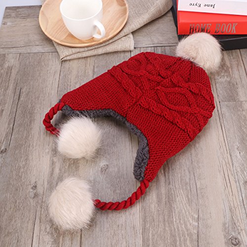 Package Including 1 x Cute Winter Warm Knit Wool Hat Dual Ball Ear Flap with Pom - S (Red) 0