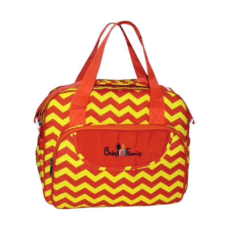 Baby Scots Baby Family 03 Tas Perlengkapan Bayi - Orange [Sedang], tas bayi berbahan Cotton yang didesain simple dalam chevron pattern dengan kompartemen utama, zipper opening, front zipper pocket, handle & adjustable shoulder strap. Tas ini dapat memuat perlengkapan bayi.