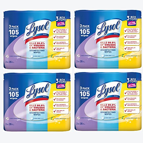 -. Feature : Disinfecting Wipes Kill 99.9% of Cold & Flu Viruses and Antibiotic resistant bacteria including Influenza A Virus H2N2, Human Corona Virus, Strep, and Staph / Lysol Wipes remove more than 95% of allergens and help prevent the growth of Mold & Mildew / This thick strong Cleaning Wipe is great at cleaning up messes in the home, bathroom, kitchen, office, and gyms / Disinfectant Wipes are great to use on door knobs, hand rails, counter tops, tables, sinks, and anywhere where germs may be present / Lysol Wipes Kills 99.9% of Viruses & Bacteria including Salmonella, E.Coli, Herpes Simplex Virus