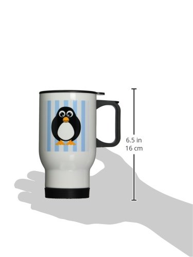 3dRose Cute Penguin with Blue Stripes Stainless Steel Travel Mug, 14-Ounce