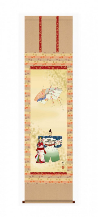 毎年、毎年の子どもの成長を願い祝うお節句に飾っていただける絵柄です。気品高く穏和な表情、人物画に求められるのは顔の表情と動形です。 製造国:日本 素材・材質:洛彩緞子三段表装、新絹本、軸先:陶器 商品サイズ:約1754(紐除く)×496(軸含む)mm 重量:443g  ※サプライヤー直送品 ご注文後7~8営業日後の出荷となります【商品名】長江 桂舟 桃の節句(雛祭り)尺三掛軸 「立雛」 MF1-152