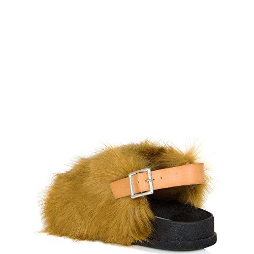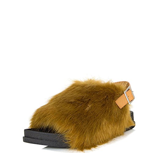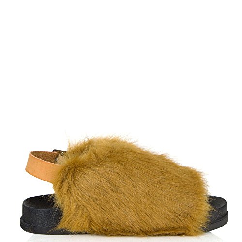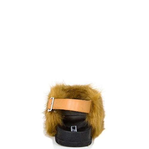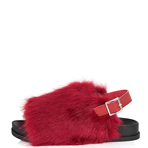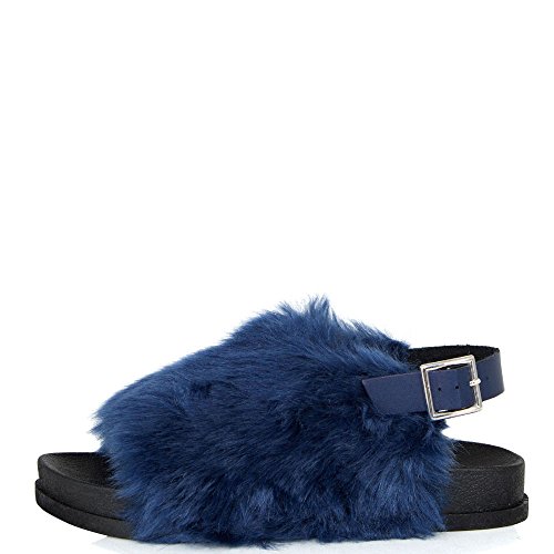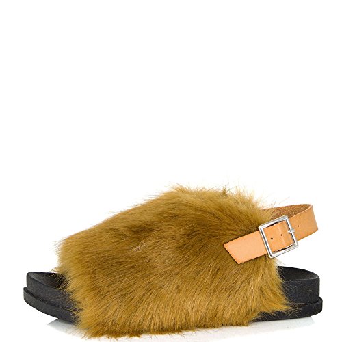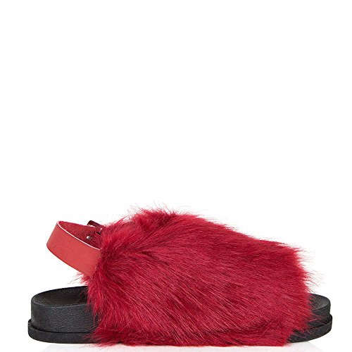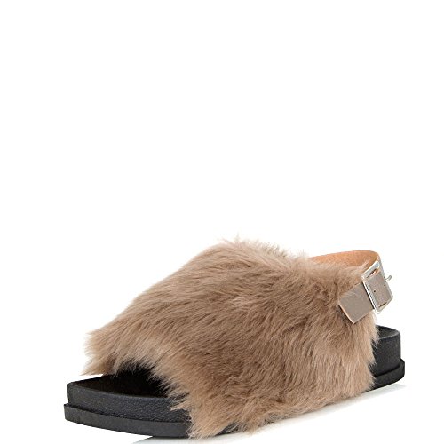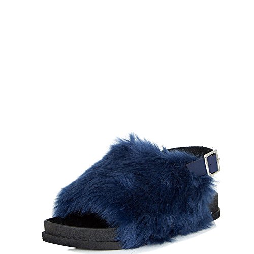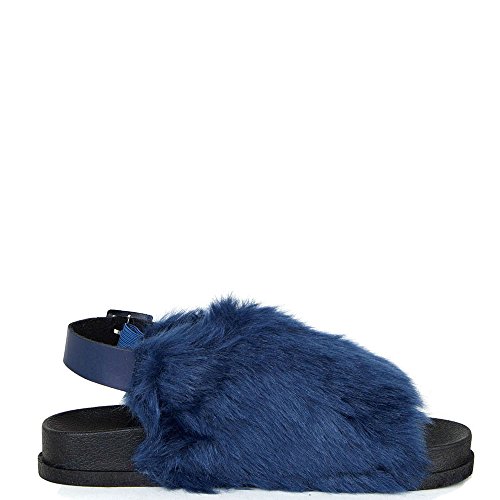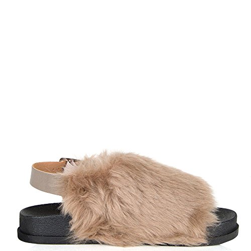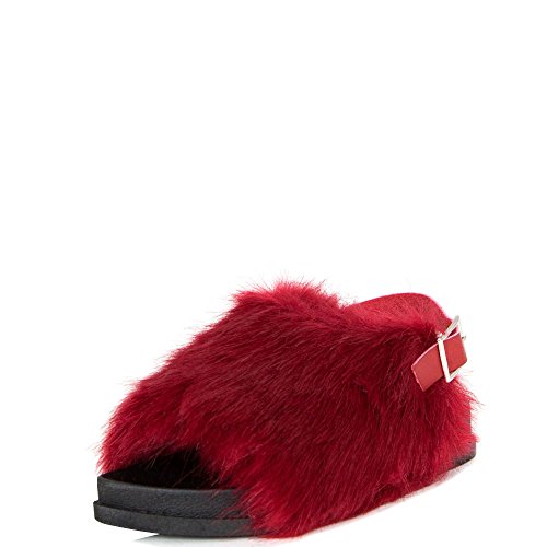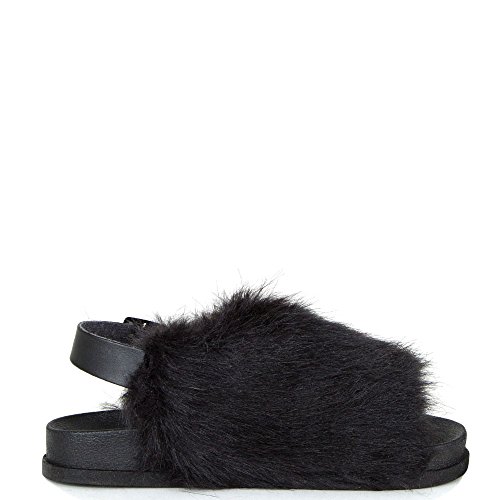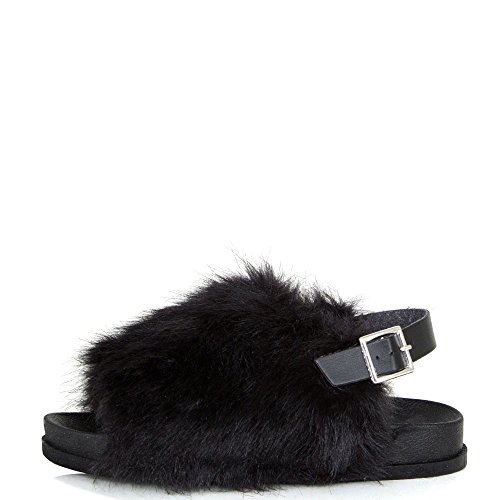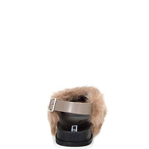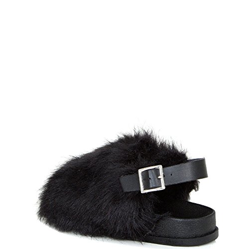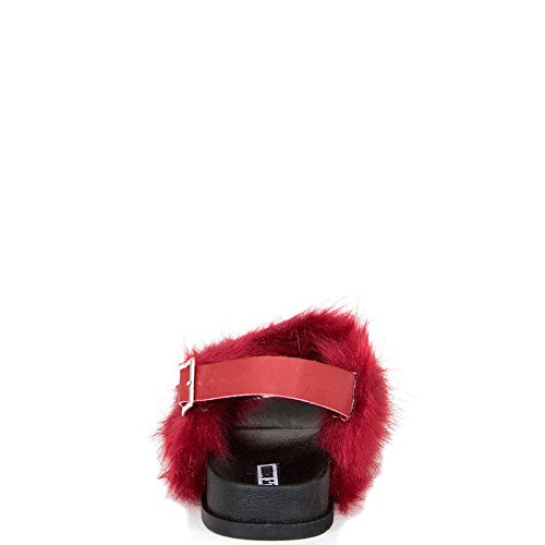 (CAPE ROBBIN)/Women's/Slippers/DIRECT FROM USA/Cape Robbin Women Fury-1 Open Toe Slingback Faux Fur Slide Flat Sandal Slip On Shoes