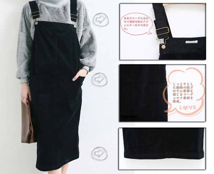 | 流行や年代にとらわれない、ちょっぴりレトロな雰囲気が漂うサロペットスカートが、ゆったり感を増して登場です。生地には、しっとりとした独特の肌ざわりに季節を感じるコーデュロイ素材を使用。程よい厚みの生地感で、ロングシーズン着られます。裾にかけてふんわりと広がったAラインシルエット。シンプルなデザインなので、インナーを変えると印象がガラッと変わります。柄物と合わせてカジュアルにしても、ニットと合わせて季節感たっぷりにしても◎。 | |