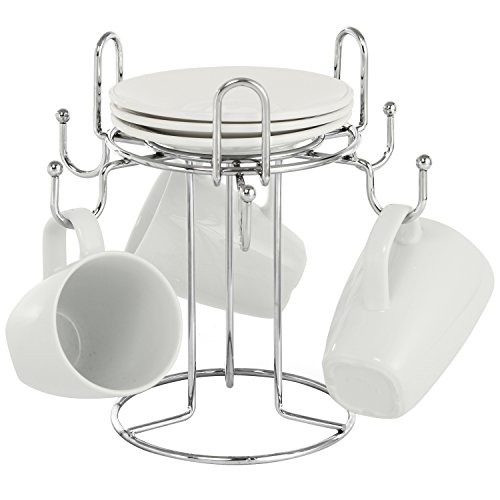 6 Hooks Chrome-Plated Metal Countertop Coffee and Tea Mug & Saucer Holder Rack