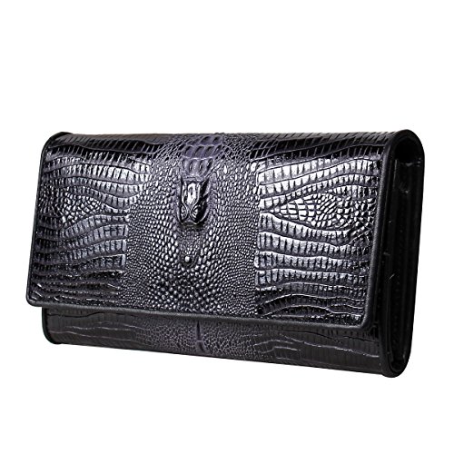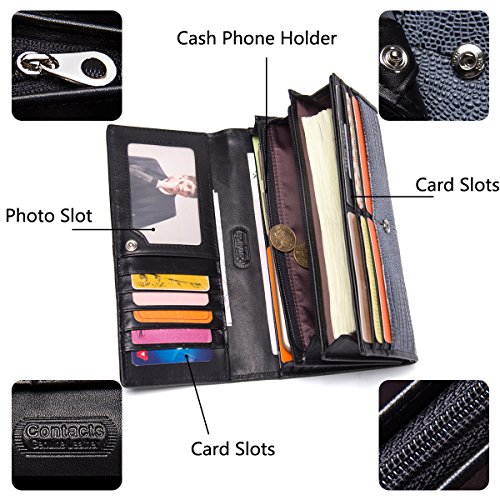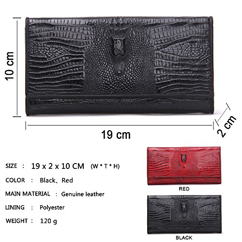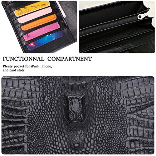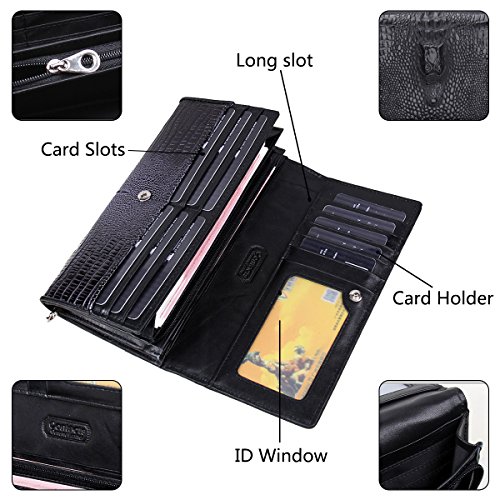 Contacts Womens Genuine Leather Alligator Crocodile Embossed Long Wallet Cluth Purse