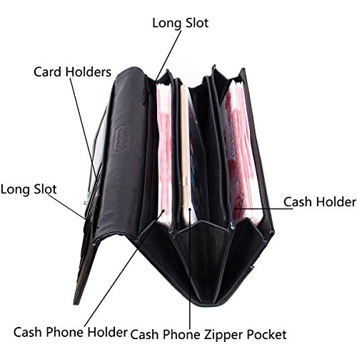 - 2 Long note Compartment, 1 Zipped note coin compartment, for organizing bill, cash, change, a small cell phone, like iPhone 6 / Samsung Galaxy S6.You can simply hold it on hand or put it in bag.
