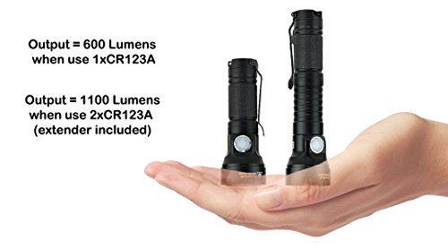 -. Feature : Bundle Includes: Eagletac TX25C flashlight, 1x LumenTac Premium Holster (for TX25C /w extender use) / Newest CREE XM-L2 U3 LED, Max Brightness 600 lumens (1xCR123A) & 1100 lumens (2xCR123A) / Ultra compact. As small as 3.4 inch in length and 2 ounces in weight / Deep reflector gives long throw up to 194 yards (1xCR123A) and 261 yards (2xCR123A) / Single hand operaton: one click to access max & different brightness outputs