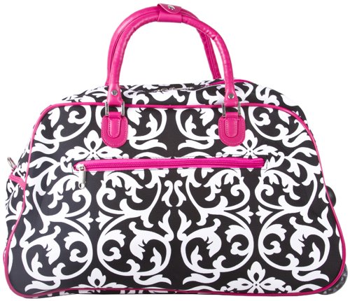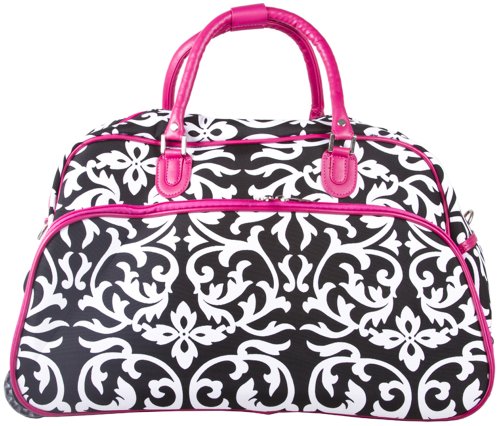 -. Title : World Traveler Pink Damask Rolling Wheeled Duffle Bag 21-inch